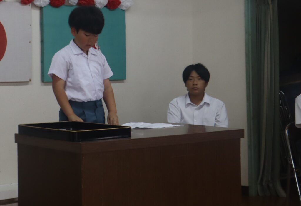 今日の終業式では,3人の児童生徒が1学期の思い出や頑張りを堂々と発表してくれました。