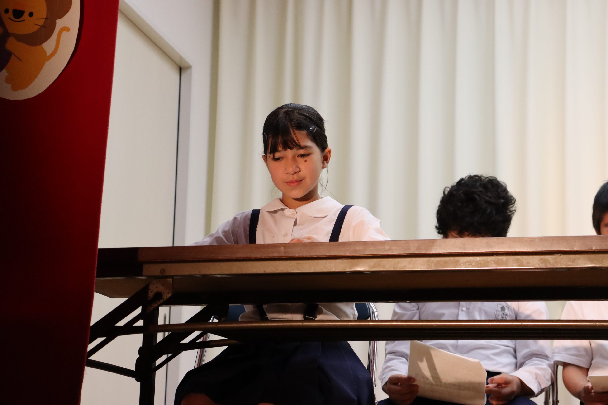 みかんです。🍊 今日は、前期生で、図工をしました。 鈴蘭テープを使って紐をつないでの学習をしました。