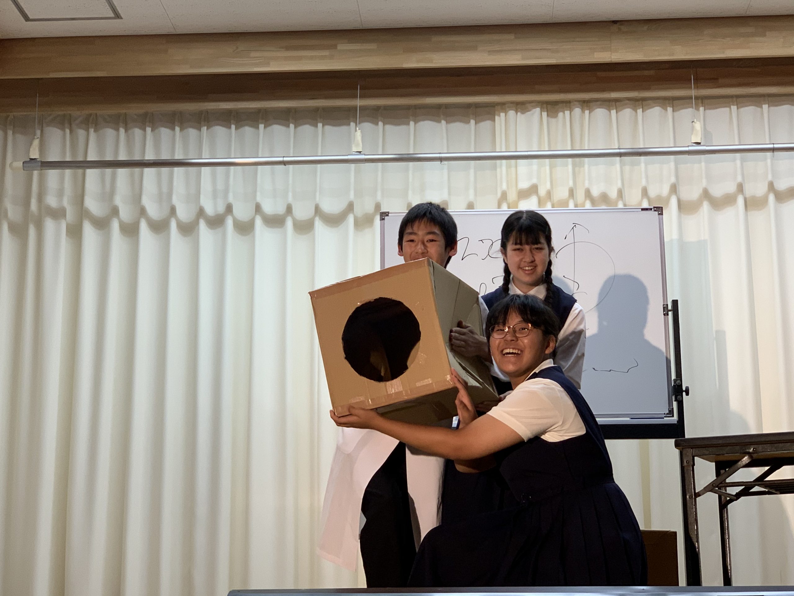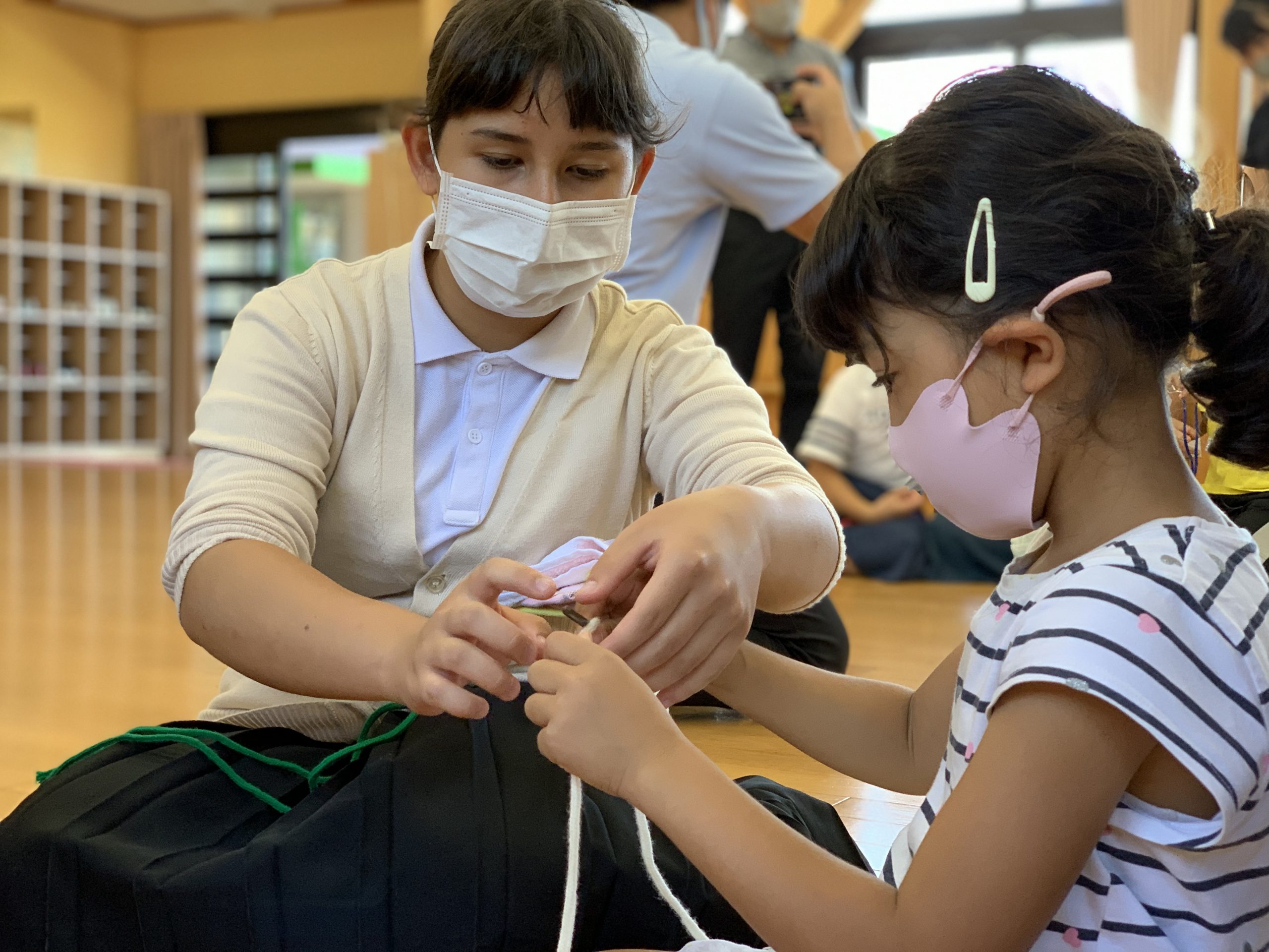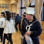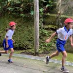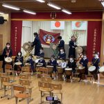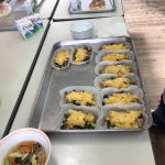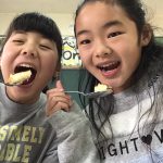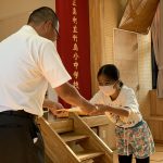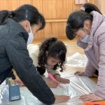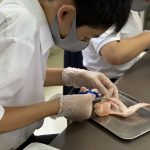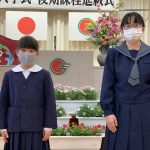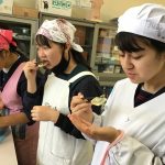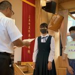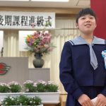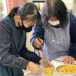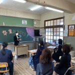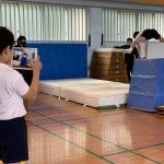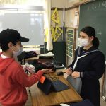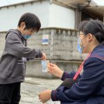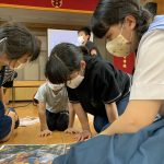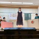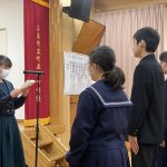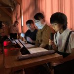 修学旅行1日目は、鹿児島市内での自主研修がありました。鹿児島にある教会や、天文館にある像などの歴史について学びました。初めて教会に入ったので、とてもワクワクしました。宿泊先では、他の学校の友達と、いろいろな体験ができました。