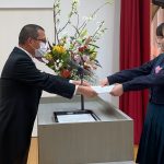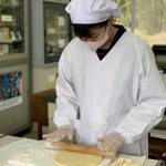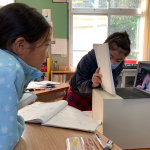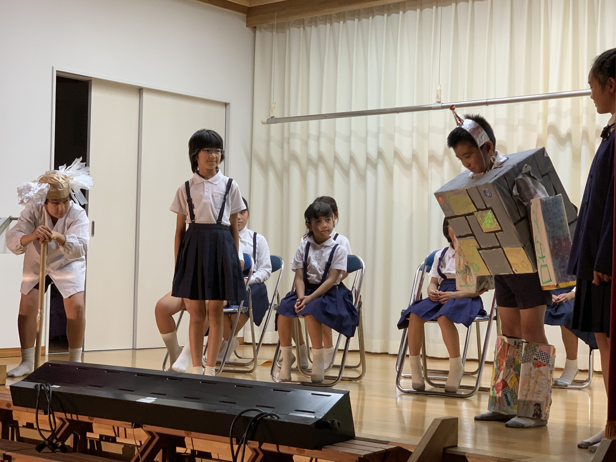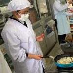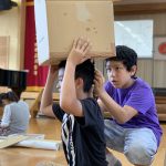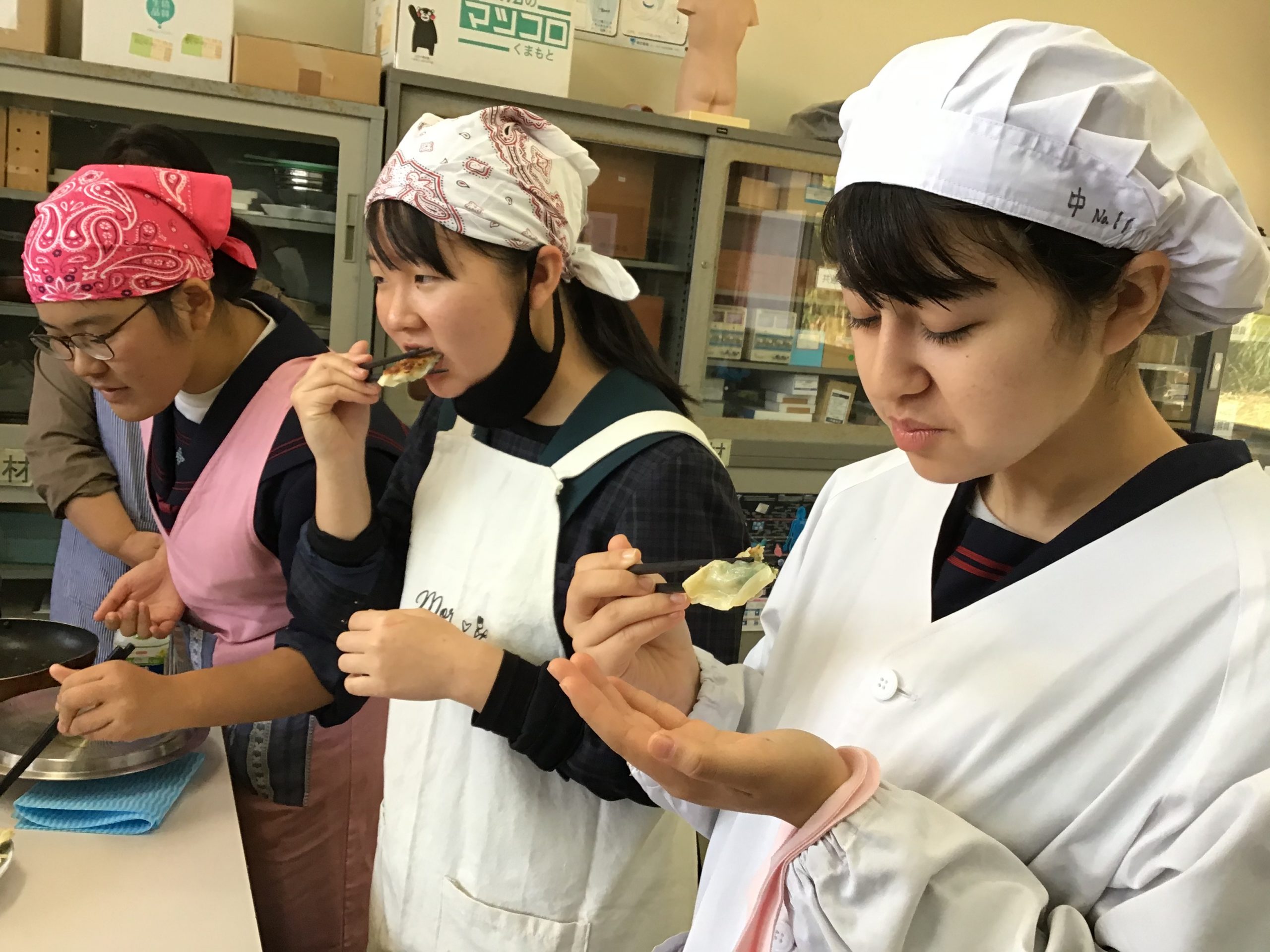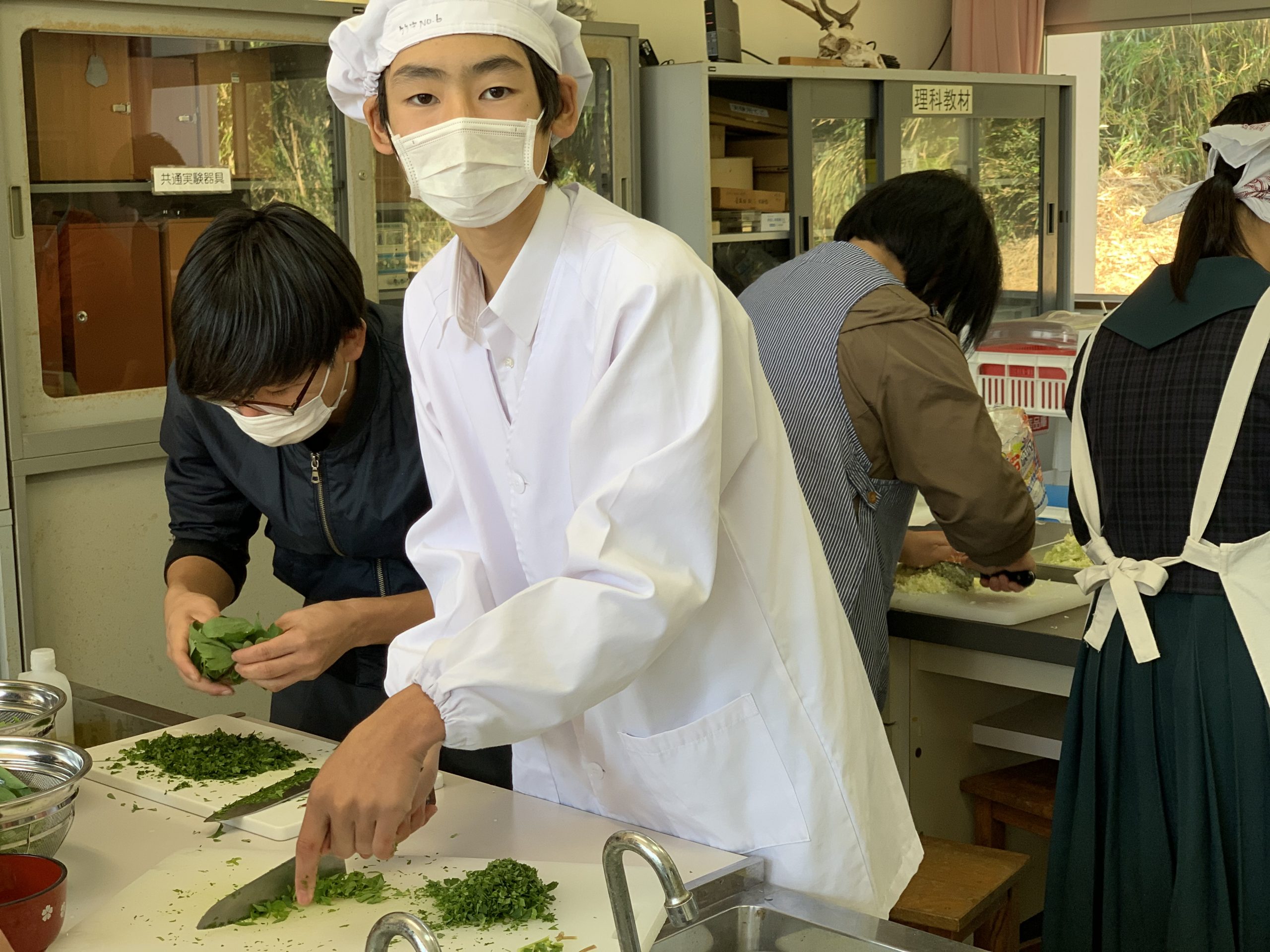 修学旅行1日目は、鹿児島市内での自主研修がありました。鹿児島にある教会や、天文館にある像などの歴史について学びました。初めて教会に入ったので、とてもワクワクしました。宿泊先では、他の学校の友達と、いろいろな体験ができました。