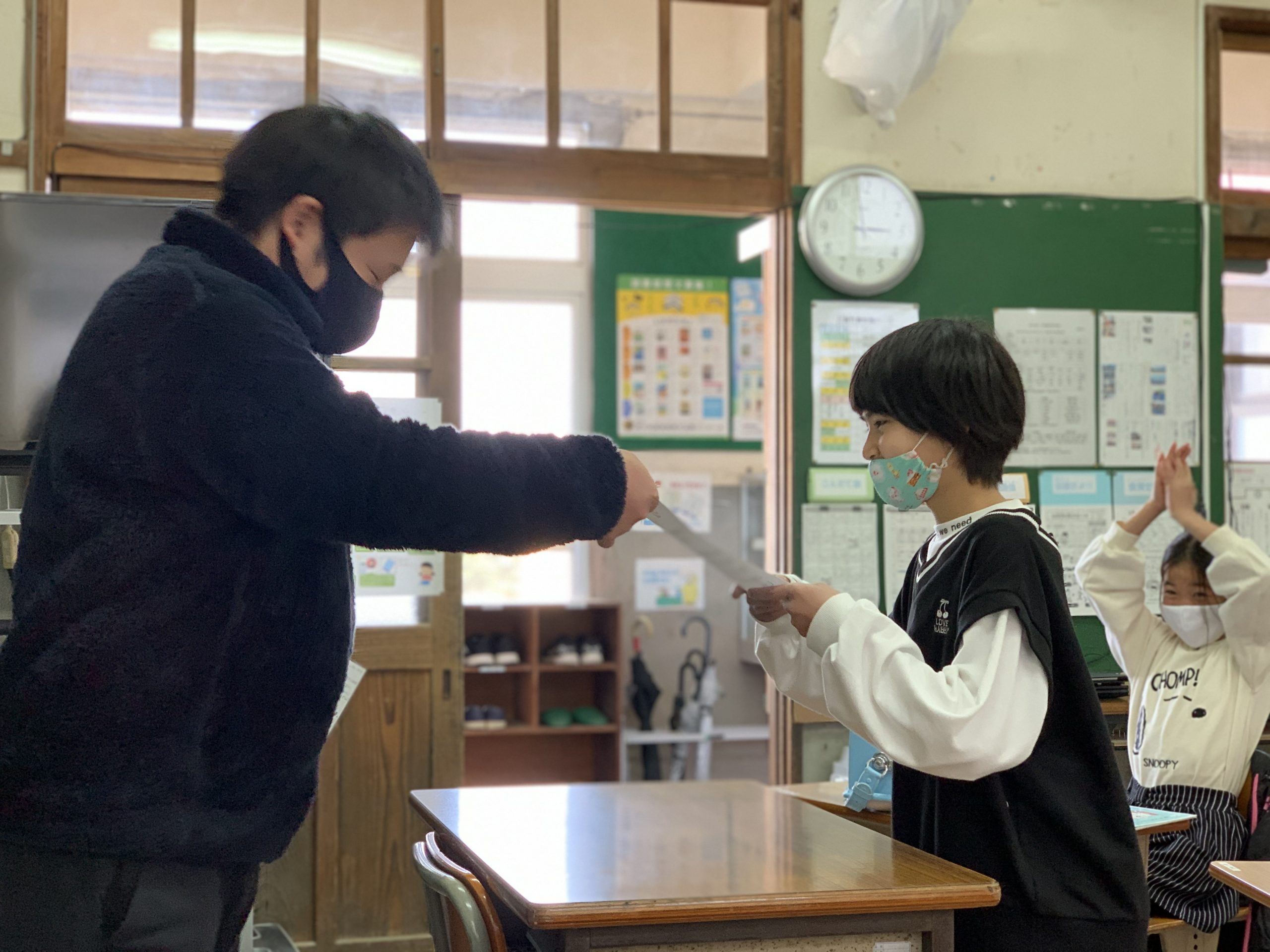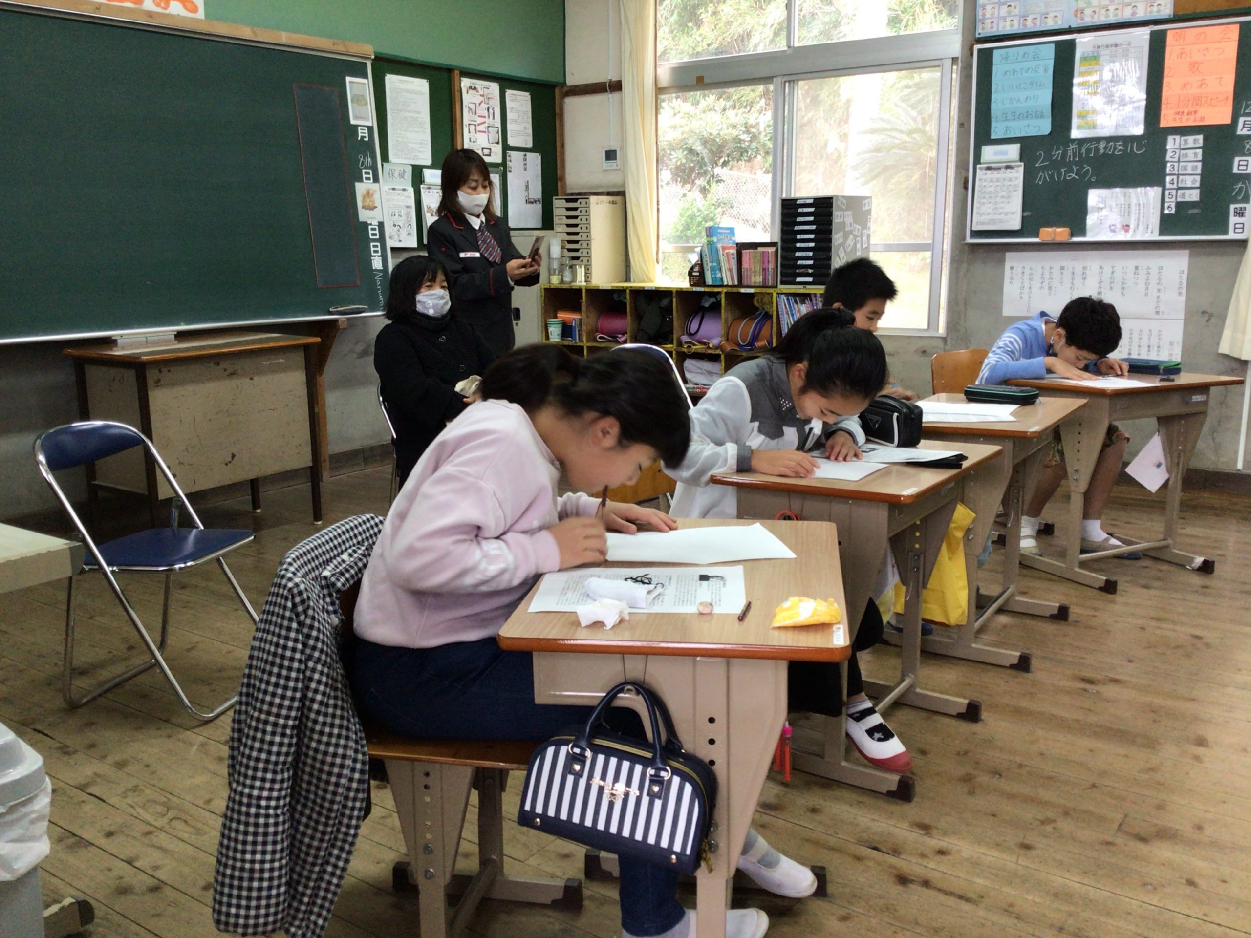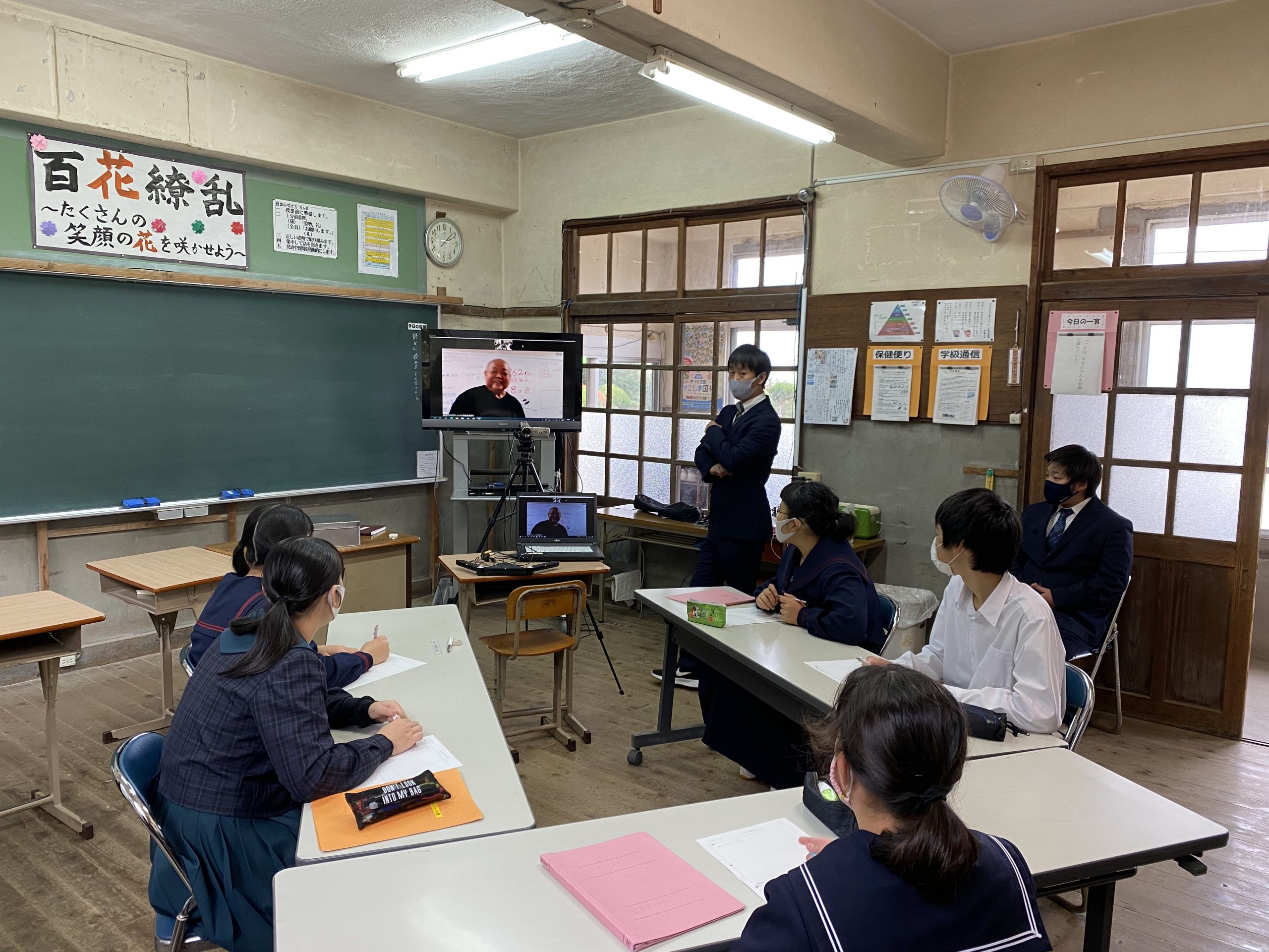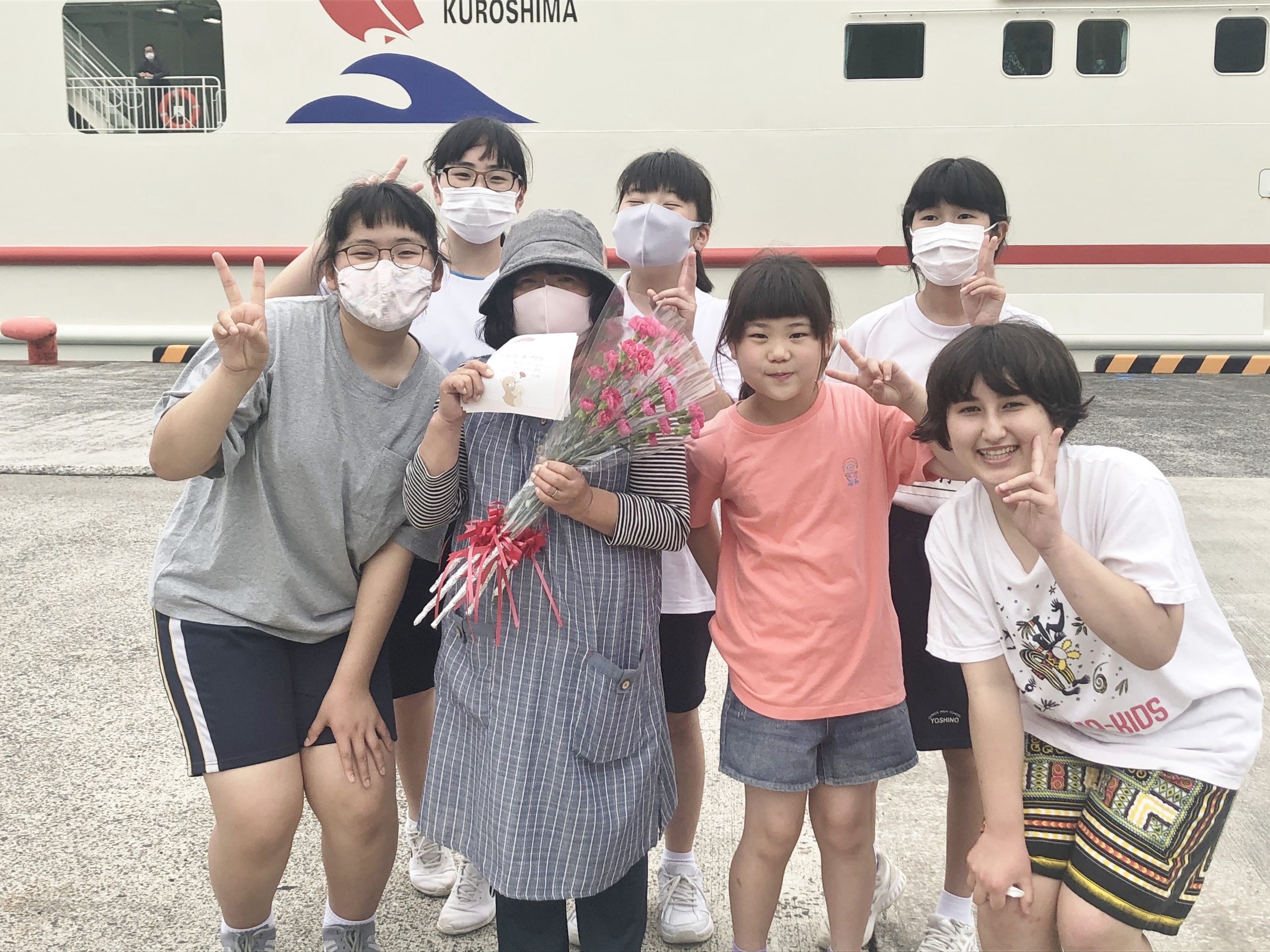 2日目は、指宿市、枕崎市に行きました。特攻平和記念館では、今の平和のありがたさについて学ぶことができました。また、午後から枕崎市立桜山小学校との交流会があり、三島村のそれぞれの学校の紹介もありました。大人数での学習があまりないのでとても新鮮でした。今度は、三島村にも来てほしいです。