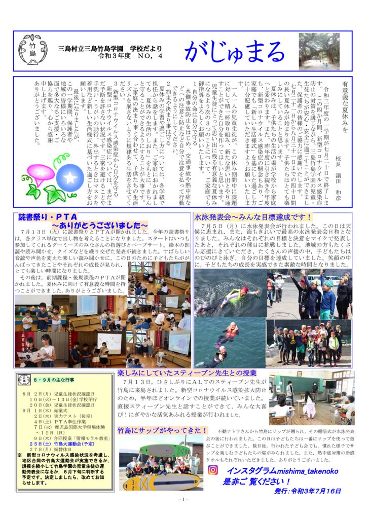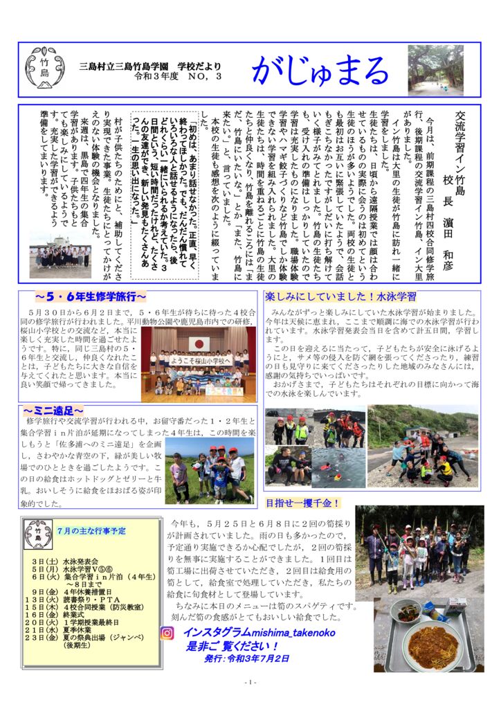 学校だより「がじゅまる」7月号