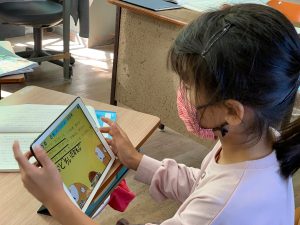 みかんです。🍊 今日は、前期生で、図工をしました。 鈴蘭テープを使って紐をつないでの学習をしました。